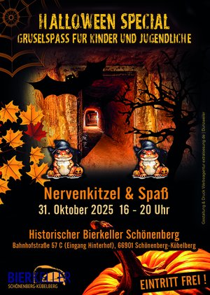Die Ortsgemeinde Schönenberg-Kübelberg lädt herzlich ein zum großen Halloween-Event im Historischen Bierkeller im Ortsteil Schönenberg!